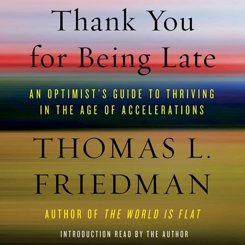 In this audiobook, Friedman moves beyond his "flat" metaphor to consider how aspects of modern society are supernovas. He posits that the intersecting of Moore's Law on integrated circuits, the rate of human-created climate change, and the increasing spread of political instability offer up many challenges for societies, but also an opportunity for people and government to change society into something never seen before. As Friedman uses many personal anecdotes to make his points, Wyman does well with both the stories and the statistics. Friedman's ideas are fascinating, but without Wyman's ability to emphasize and to change delivery speed, listeners could easily get tired of the many details. Instead, Wyman keeps to a steady drive and an energetic projection that hold listeners' attention. L.E. © AudioFile 2016, Portland, Maine [Published: DECEMBER 2016]