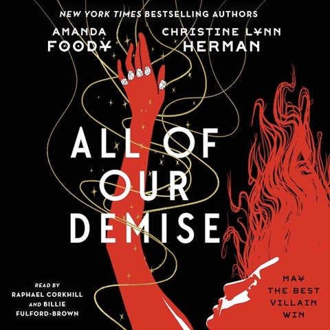 Billie Fulford-Brown and Raphael Corkhill return to narrate the second installment in the Foody/Herman fantasy duology, ALL OF US VILLAINS. Picking up where they left off, Fulford-Brown performs the chapters told by Briony and Isobel with a tight vocal timbre, while Corkhill handles those of Alistair and Gavin with a feverish intensity. Together, they skillfully imbue this story with plenty of heart and a few moments of tenderness. Fulford-Brown carefully mixes fragility into both young women as they plot to end the ancient tournament of survival, casting spells and curses to crush the sacrificial legacy. Corkhill enlivens their two power-hungry male opponents, who roar with anger and mistrust each time alliances shift or break down. A fitting conclusion to this dark fantasy. S.D.B. © AudioFile 2022, Portland, Maine [Published: OCTOBER 2022]