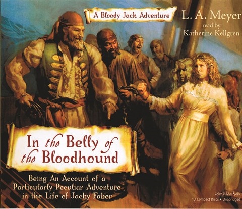 Labeled a pirate by the King of England and once again losing her beloved Jamie, series protagonist Jacky is lying low at the Lawson Peabody School for Young Ladies, a respectable finishing school for the daughters of American aristocrats. On a boat trip out of Boston Harbor, Jacky and her classmates are kidnapped by white slavers and stowed below decks on the bad ship BLOODHOUND, headed for the Barbary Coast and the Arab auction blocks. Katherine Kellgren takes listeners on a rollicking action-packed journey as irrepressible Jacky outwits a hardened crew and turns a bunch of privileged princesses into a formidable fighting force. Jacky encounters thrill-a-minute dangers—from a near-hanging to a brutal whipping, from near-starvation to dining on the ship's plentiful rat population. Kellgren delivers a bravura performance. S.J.H. Winner of AudioFile Earphones Award, 2010 Audies Finalist © AudioFile 2009, Portland, Maine [Published: SEPTEMBER 2009]