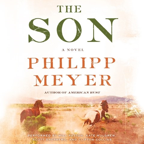 The story of a Western family ranges from the mid-1800s to the present day and is told through three alternating voices of McCulloughs. Philipp Meyer’s wonderful novel employs beautiful turns of phrase, imaginative imagery, and vivid scenes. It’s all matched by the quality narration of a full cast. Will Patton’s grizzled voice is perfect for Eli, who becomes a man at a young age. Kate Mulgrew’s deep-voiced twang gives great-granddaughter J.A. the vocal personality her independence deserves. And Scott Shepherd’s slightly shaky and tired voice is perfect for Peter, Eli’s son, who details his perspective through the pages of his diary. Meyer’s story recounts more than 150 years, covering rough and rocky ground, which is smoothed out by attentive narrators. M.B. Winner of AudioFile Earphones Award, 2014 Audies Finalist © AudioFile 2013, Portland, Maine [Published: JUNE 2013]